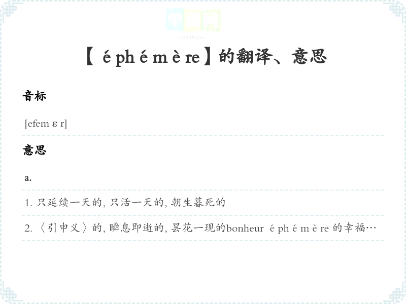 【éphémère】是什么意思、字义解释