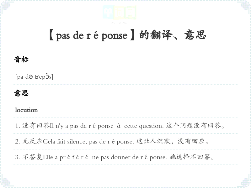 无反应Cela fait silence, pas de réponse. 这让人沉默,没有回应。