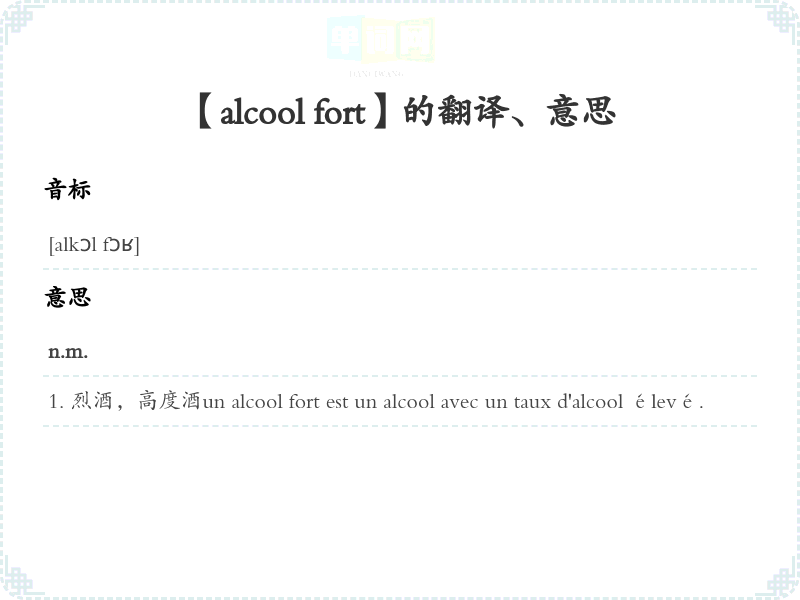 【alcool fort】是什么意思、字义解释