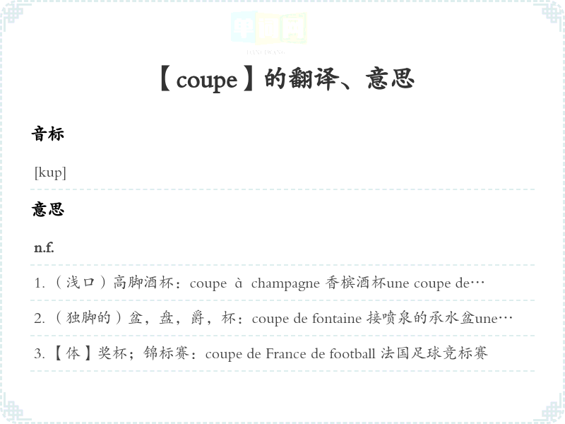 【coupe】是什么意思、字义解释