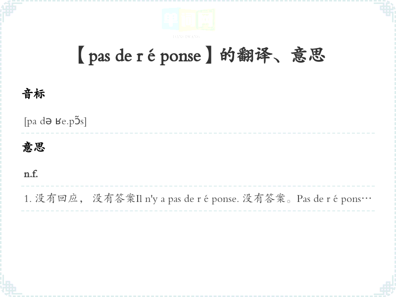 【pas de réponse】是什么意思、字义解释
