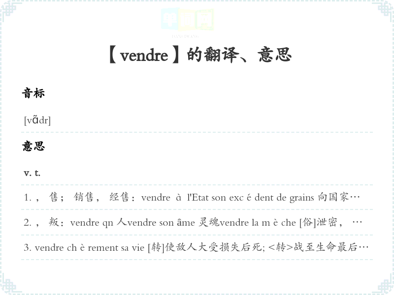 【vendre】是什么意思、字义解释