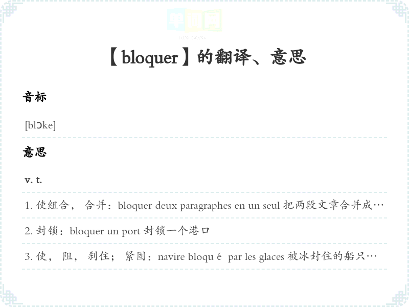 【bloquer】是什么意思、字义解释