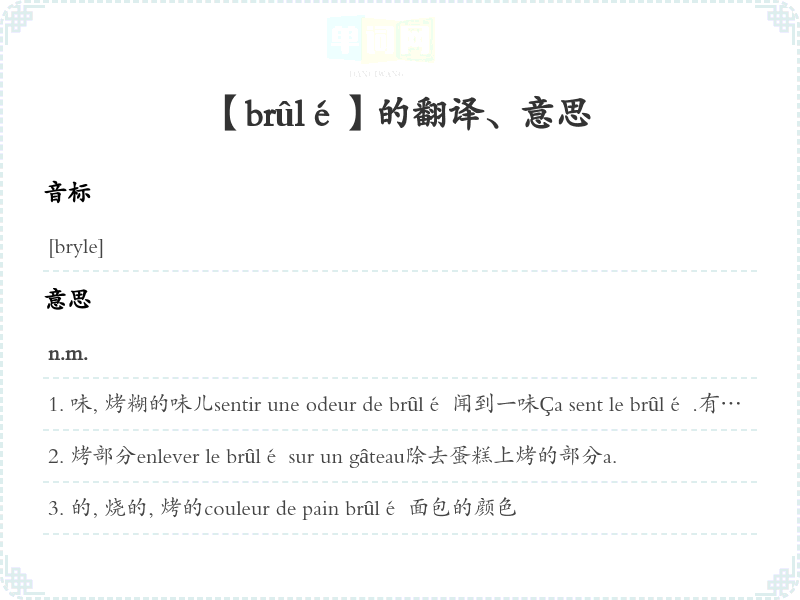 【brûlé】是什么意思、字义解释