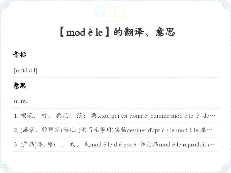 【modèle】是什么意思、字义解释
