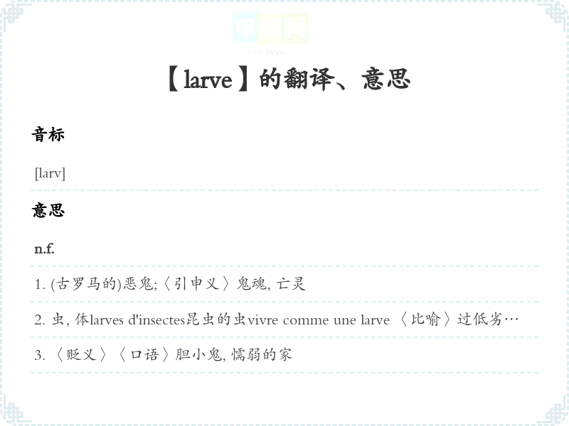 虫, 体larves d'insectes昆虫的虫vivre comme une larve 〈比喻〉过低劣单调的活