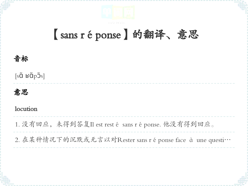 没有回应,未得到答复Il est resté sans réponse. 他没有得到回应。