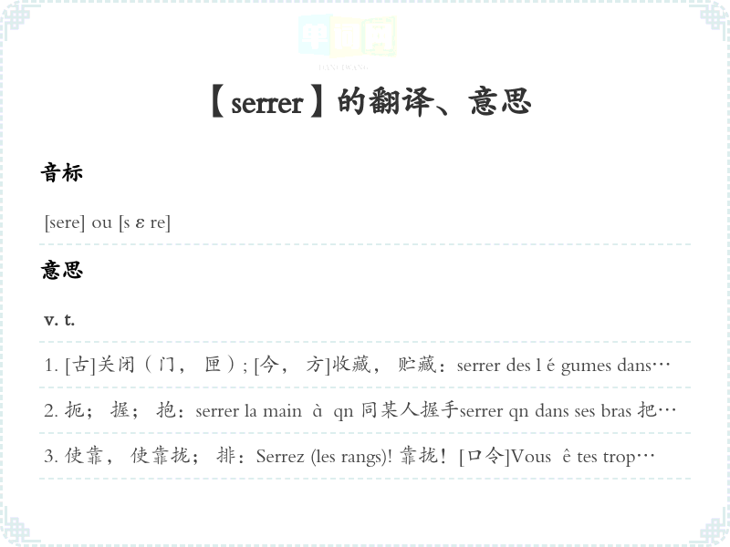 【serrer】是什么意思、字义解释