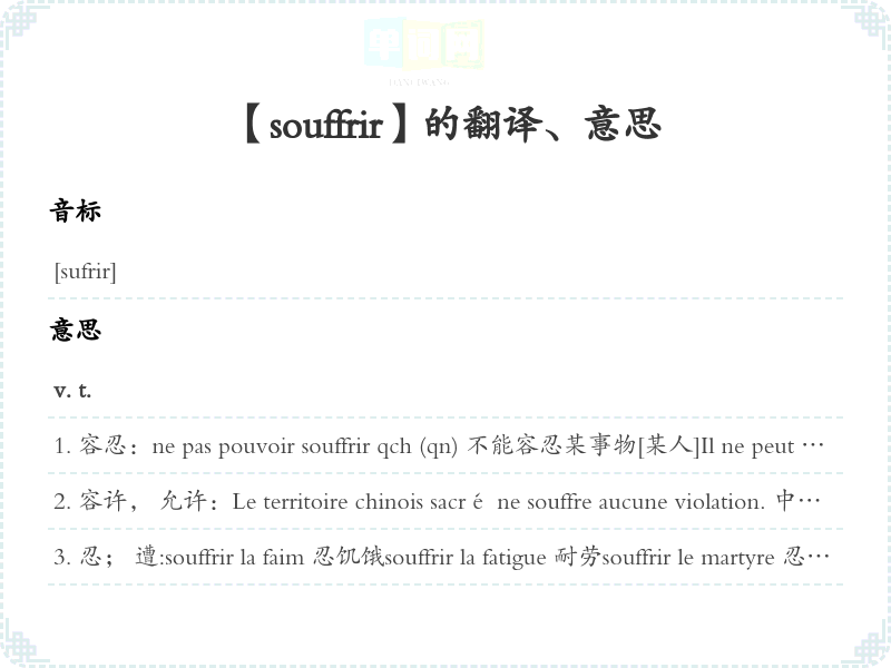 【souffrir】是什么意思、字义解释