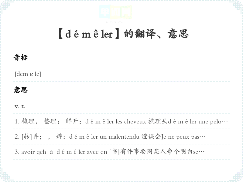 【démêler】是什么意思、字义解释