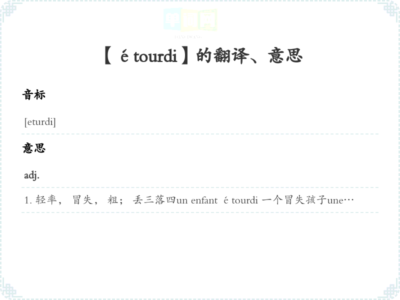 【étourdi】 联想:、 近义词:、 反义词: 联想词