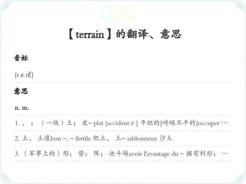 【terrain】是什么意思、字义解释