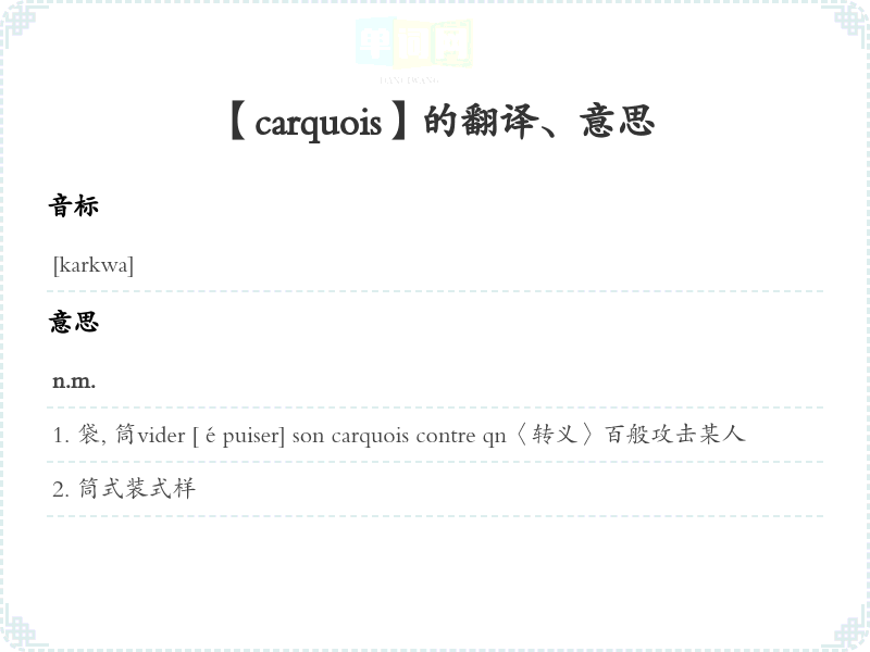 袋, 筒vider [épuiser] son carquois contre qn〈转义〉百般攻击某人