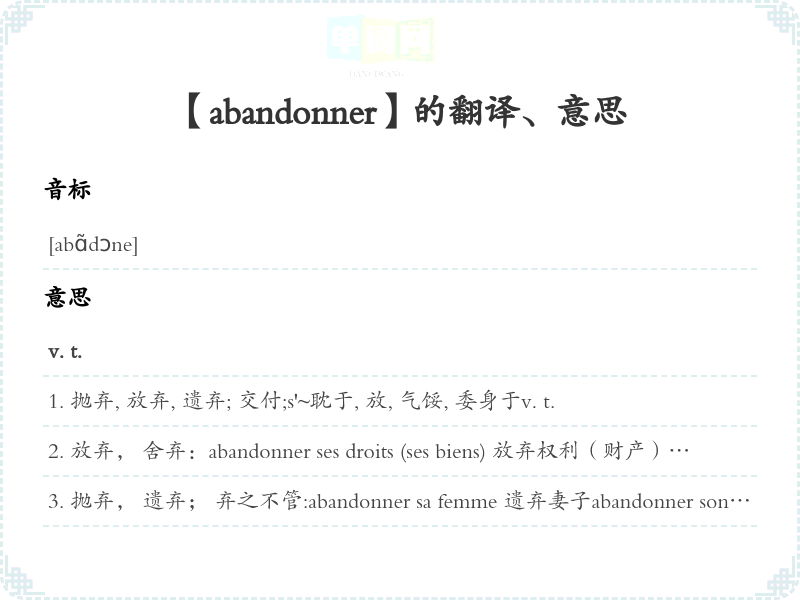 【abandonner】是什么意思、字义解释