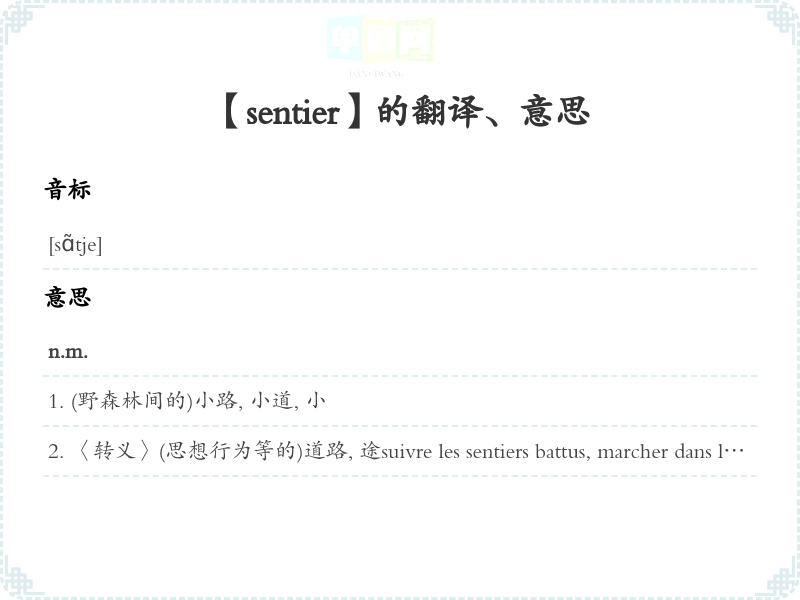 【sentier】是什么意思、字义解释