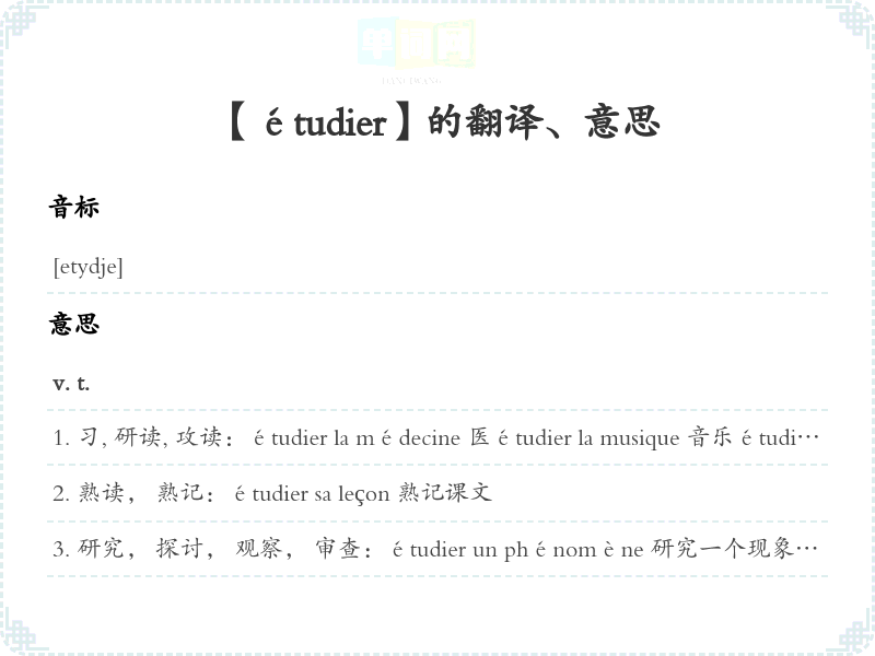 【étudier】是什么意思、字义解释
