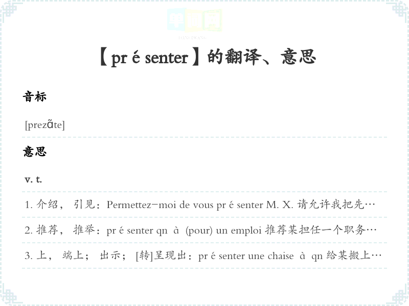 【présenter】是什么意思、字义解释