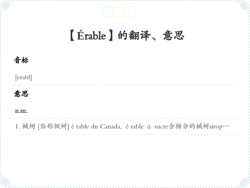 槭树 [俗称枫树]érable du Canada, érable à sucre含糖分的槭树sirop d'érable 槭糖