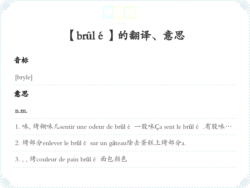 【brûlé】是什么意思、字义解释