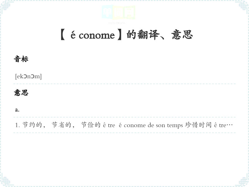 【économe】 派生:、 联想:、 近义词:、 反义词: 联想词