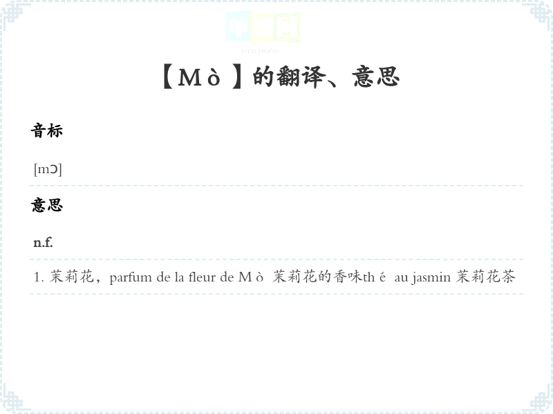茉莉花,parfum de la fleur de Mò 茉莉花的香味thé au jasmin 茉莉花茶