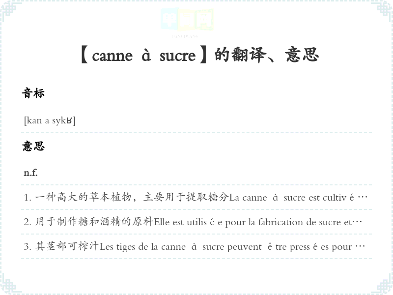 【canne à sucre】是什么意思、字义解释