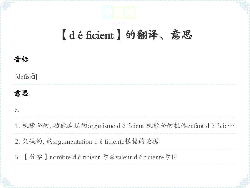 机能全的, 功能减退的organisme déficient 机能全的机体enfant déficient 智力发育全的孩子