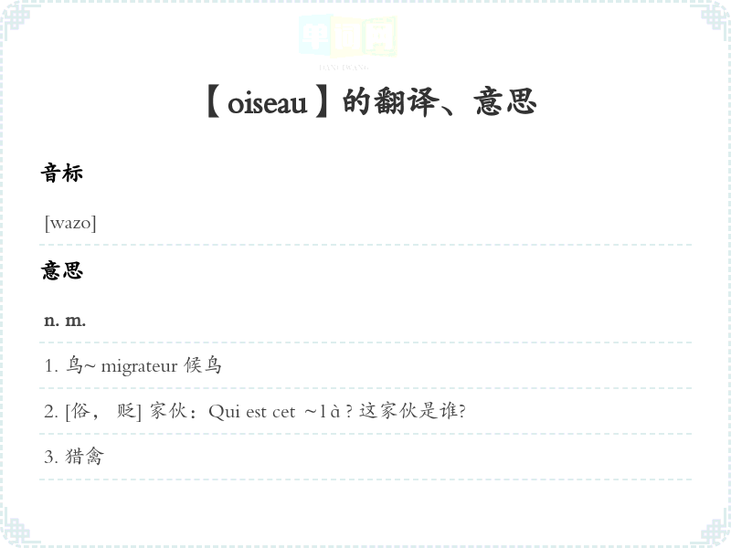 【oiseau】是什么意思、字义解释