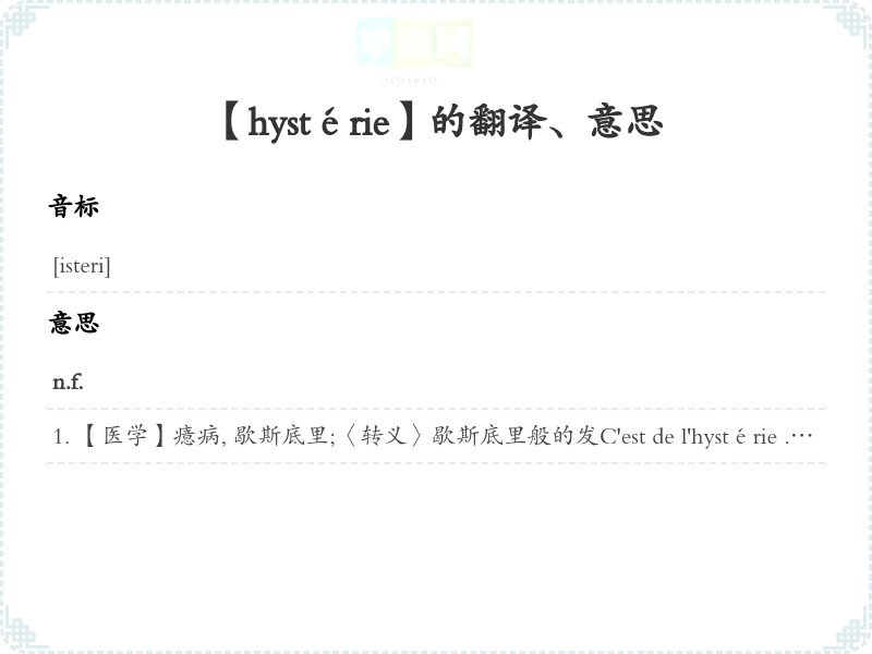 【hystérie】是什么意思、字义解释
