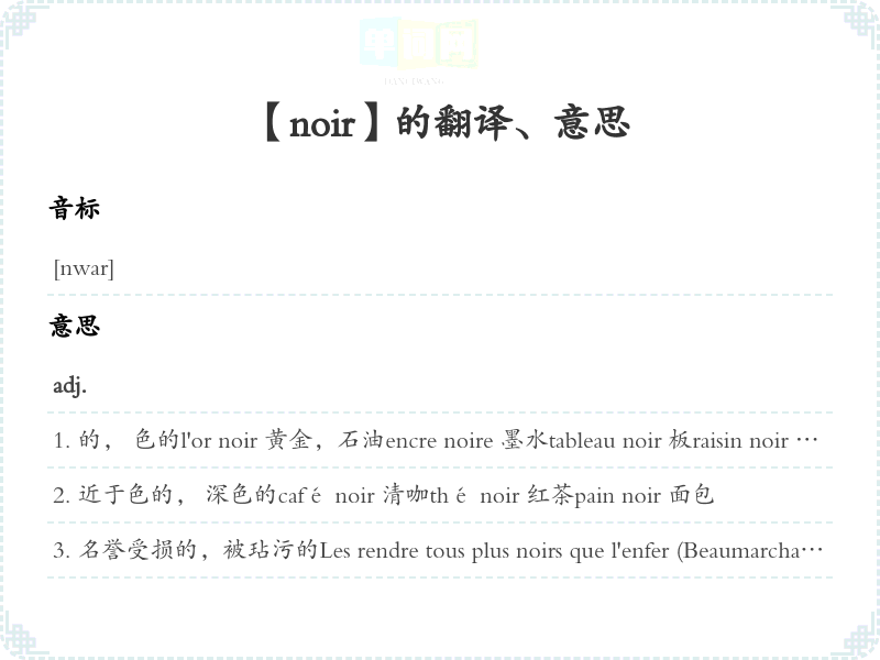 【noir】是什么意思、字义解释
