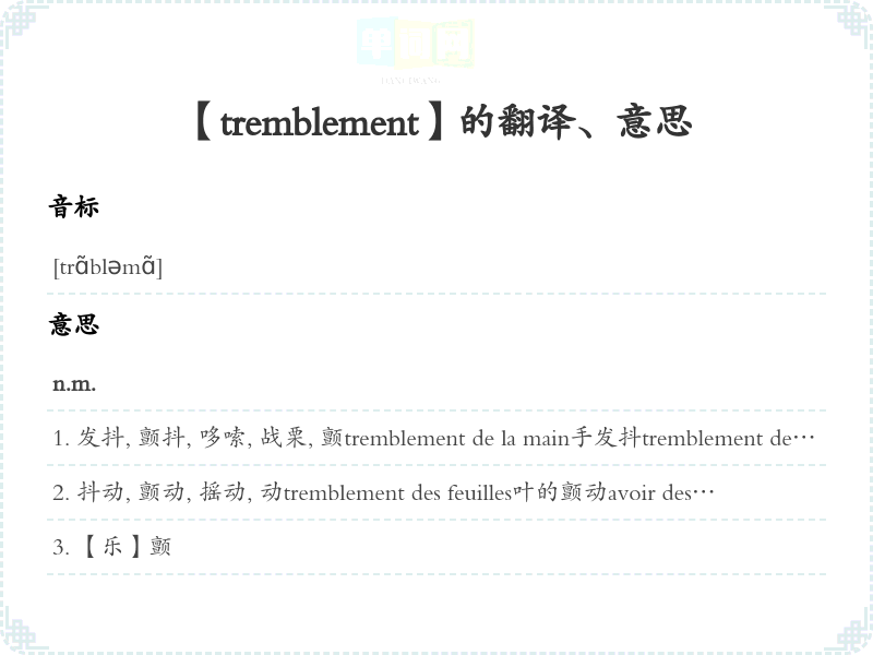 【tremblement】是什么意思、字义解释