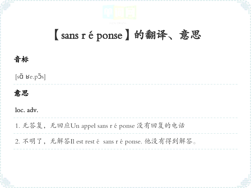 不明了,无解答Il est resté sans réponse. 他没有得到解答。