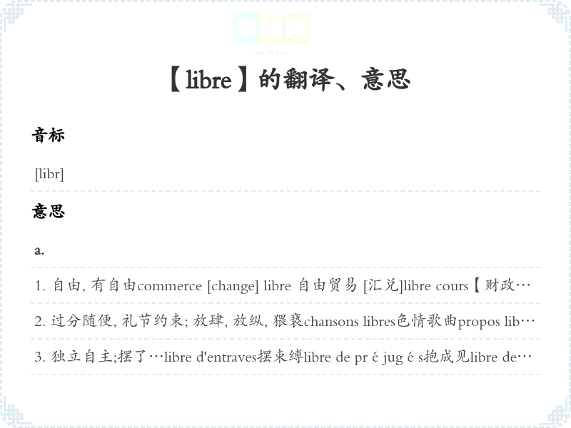 【libre】是什么意思、字义解释