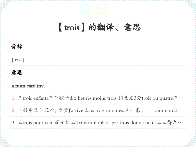 【trois】是什么意思、字义解释