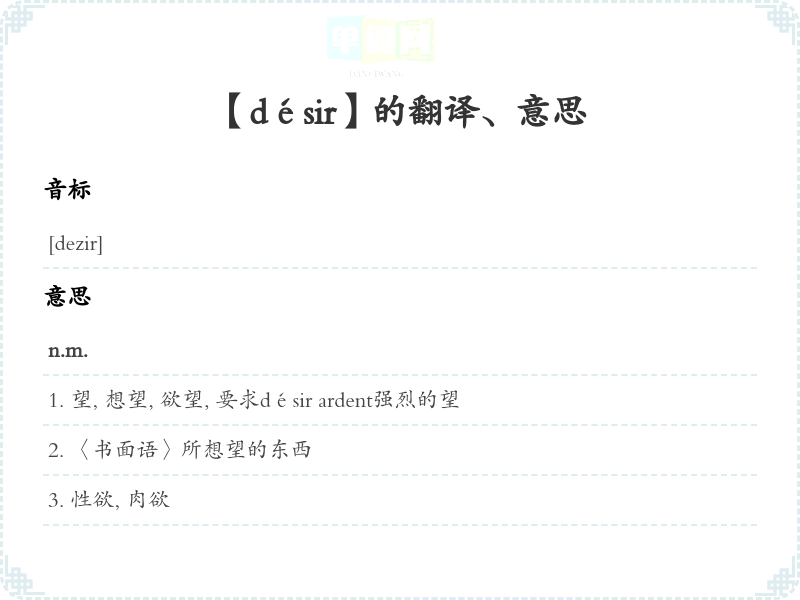 【désir】 联想:、 形词化:、 近义词:、 反义词: 联想词