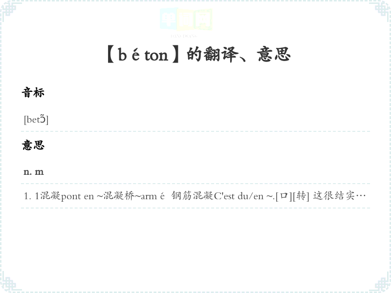 【béton】是什么意思、字义解释