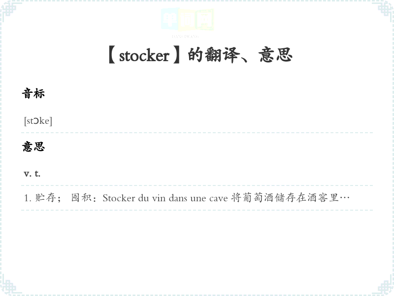 【stocker】 近义词:、 反义词: 联想词