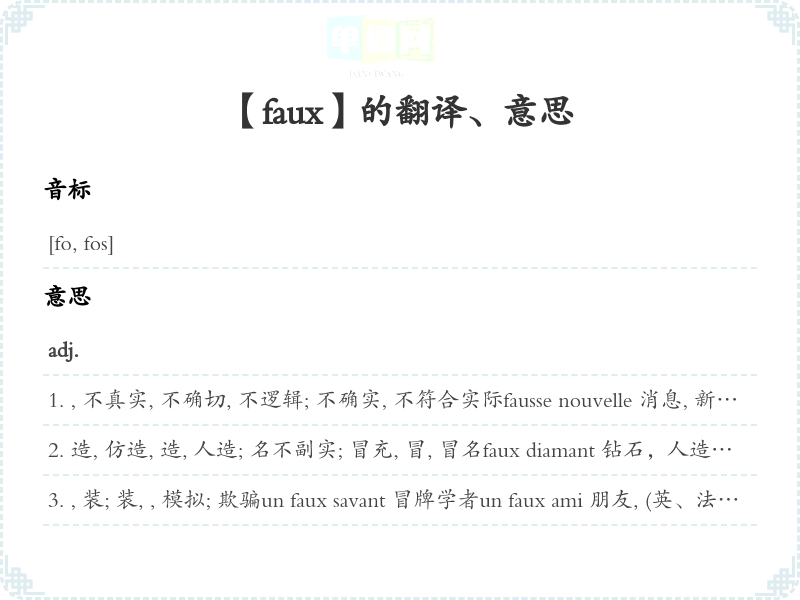 【faux】是什么意思、字义解释