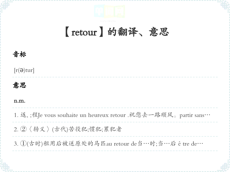 【retour】是什么意思、字义解释