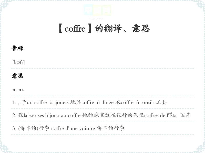 【coffre】是什么意思、字义解释