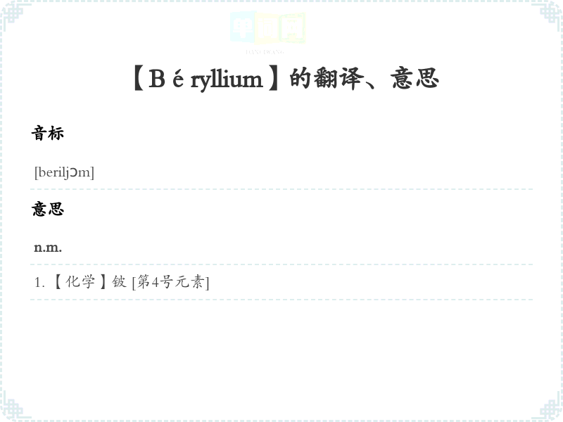 【Béryllium】是什么意思、字义解释