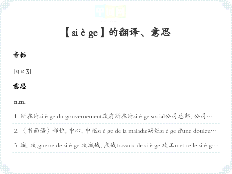 【siège】是什么意思、字义解释