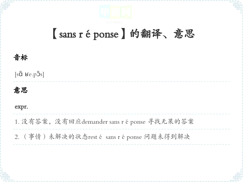 【sans réponse】是什么意思、字义解释