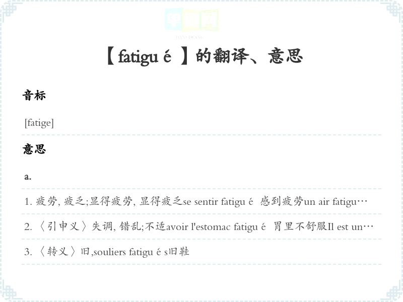 【fatigué】是什么意思、字义解释