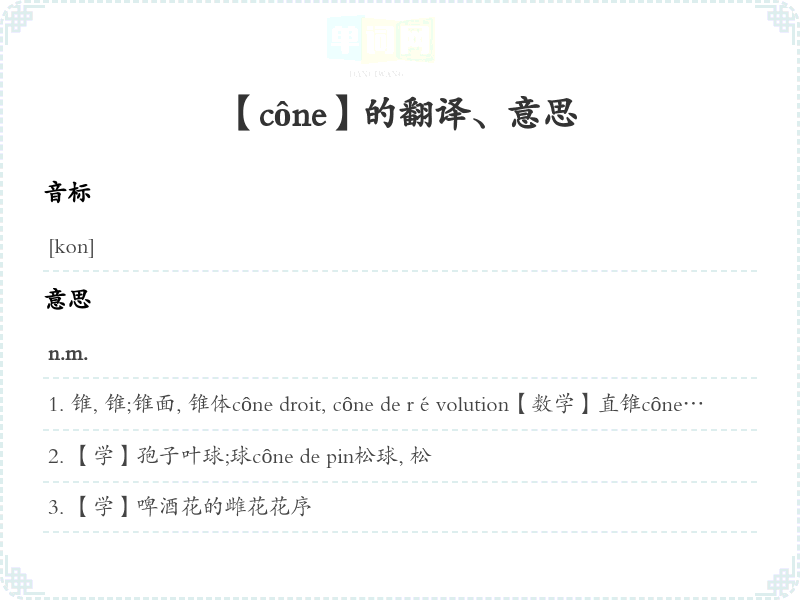 【cône】是什么意思、字义解释