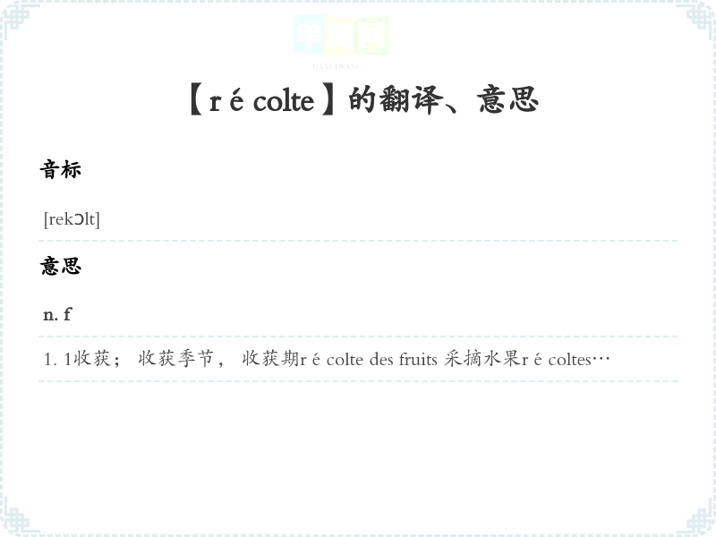 【récolte】是什么意思、字义解释
