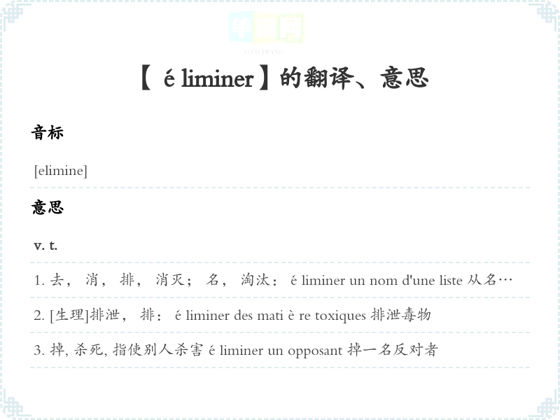 【éliminer】是什么意思、字义解释