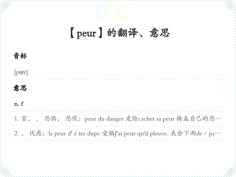 【peur】是什么意思、字义解释