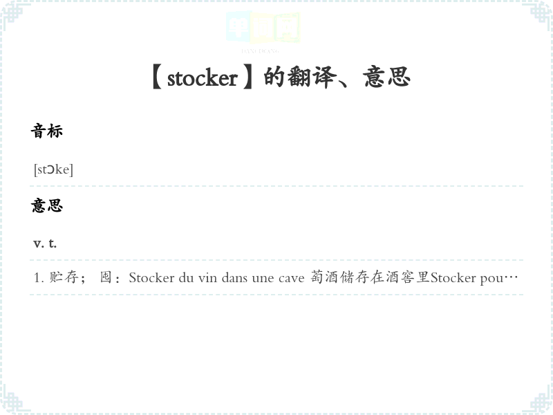 【stocker】 近义词:、 反义词: 联想词