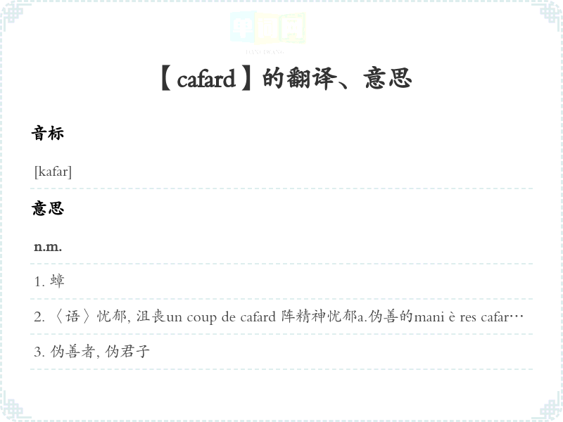 【cafard】 近义词:、 反义词: 联想词